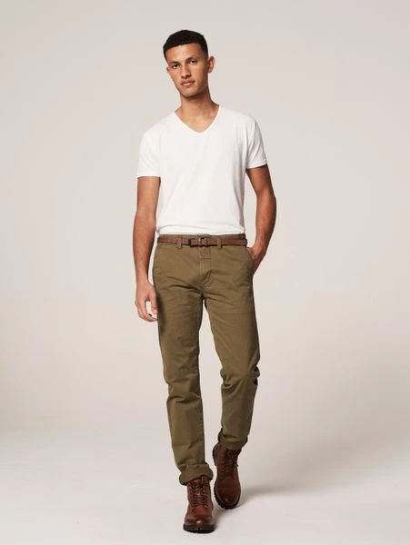 De broeken van Dstrezzed staan bekend om hun uitstekende kwaliteit en hun moderne pasvorm. Dit geldt zeker ook voor deze Dstrezzed Presley chino. De herenbroek heeft een stijlvolle donkergroene ‘Army Green’ kleur en is afgewerkt met twee steekzakken op de voorzijde, twee achterzakken met knoopsluiting en bijpassende riem.