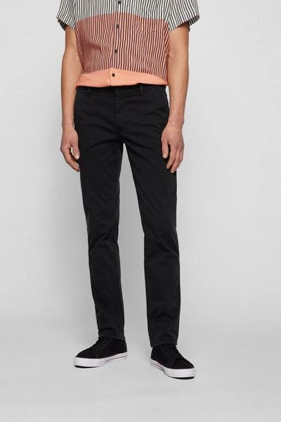 De collectie van Hugo Boss staat bekend om zijn hoogwaardige kwaliteit, nauwkeurige designs en vakmanschap in elk product. Deze Chino broek is hier een perfect voorbeeld van. De herenbroek heeft een klassieke zwarte kleur en is voorzien van twee steekzakken aan de voorzijde, ritssluiting en achterzakken.