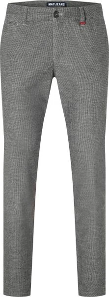Combineer comfort met stijl met deze Lennox broek van Mac. De getailleerde Modern-Fit pasvorm valt slank om je bovenbeen met rechte broekspijpen en zorgt zo voor voldoende ruimte om vrij te bewegen. De chino is afgewerkt met twee steekzakken en een munzakje aan de voorkant, twee paspelzakken aan de achterkant en heeft een subtiel pied de poule dessin.