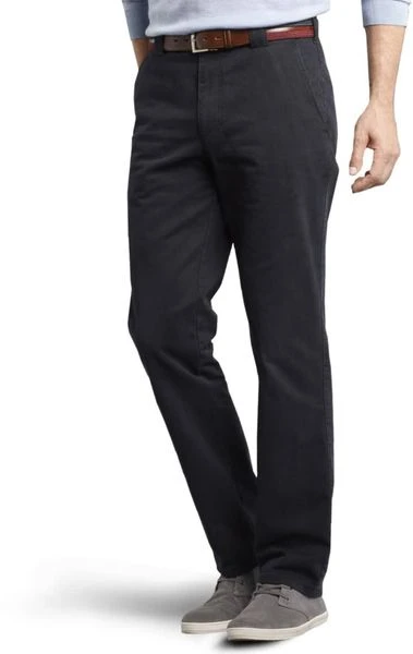 Deze prachtige Meyer Broek past bij tal van gelegenheden. Deze donkerblauwe chino heeft een ruime Regular-fit pasvorm, perfect als je bijvoorbeeld iets zwaarder bent.Â