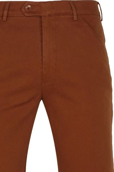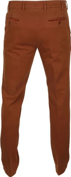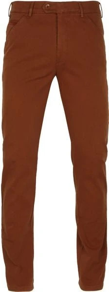 Als je voor deze chino van Meyer kiest, kies je voor een hoge kwaliteit herenbroek met een modische uitstraling. Het Chicago model heeft een trendy rood bruine roest kleur gebonden in een moderne binding en is voorzien van enkele stoere details, een ritssluiting, twee steekzakken met paspelzakken aan de achterzijde en twee steekzakken met coinpocket aan de voorzijde. In de linker broekzak aan de voorzijde van de chino is een zak met ritssluiting verstopt, waarin je jouw waardevolle eigendommen veilig kunt opbergen.