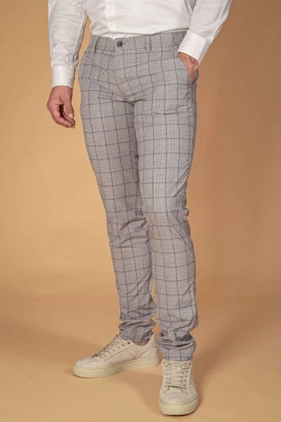 Met de Pico chino van Suitable maak je geheid een stijlvolle indruk. De modern-fit pasvorm zorgt ervoor dat de grijs geruite broek licht getailleerd langs je lichaam valt. Hierdoor is de chino ideaal te combineren met een polo of klassiek overhemd.