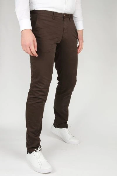 Voor zowel een casual als een formeel moment is deze Sartre chino van Suitable uitermate geschikt. De stijlvolle donkerbruine kleur zorgt ervoor dat de herenbroek eenvoudig te combineren is, met bijvoorbeeld een overhemd, pullover of blazer.Â