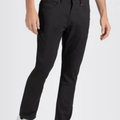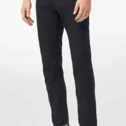 Het five-pocket model heeft een klassieke zwarte kleur, wat de broek een tijdloze uitstraling met een modische vintage look geeft. Daarnaast is de stijlvolle broek voorzien van een fijne twill binding, robuuste details, een licht getailleerde Modern-Fit pasvorm, twee broekzakken aan de achterzijde en twee steekzakken en een coinpocket aan de voorzijde.