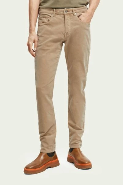 Met deze beige Ralston broek van Scotch & Soda maak je een stijlvolle en trendy indruk. De Slim-fit pasvorm zorgt ervoor dat de broek getailleerd langs je lichaam valt. De broek is ideaal te combineren met een polo en zorgt door de corudroy binding voor een trendy look.