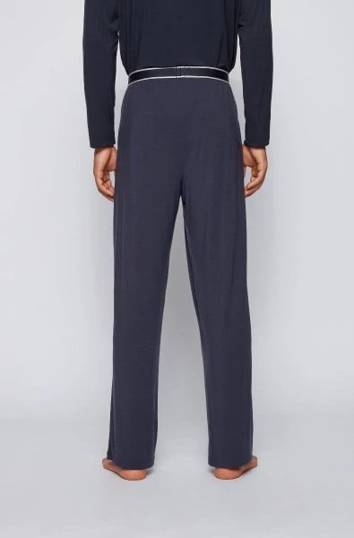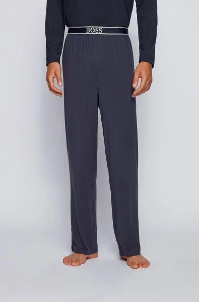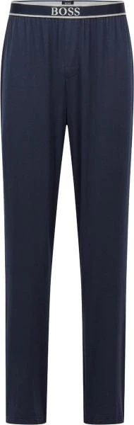 Met deze comfort broek van Hugo Boss haal je een comfortabele broek in huis. De herenbroek heeft een donkerblauwe kleur en een ruimvallende Regular-Fit pasvorm. Ideaal om thuis aan te trekken voor een avond op de bank.Â