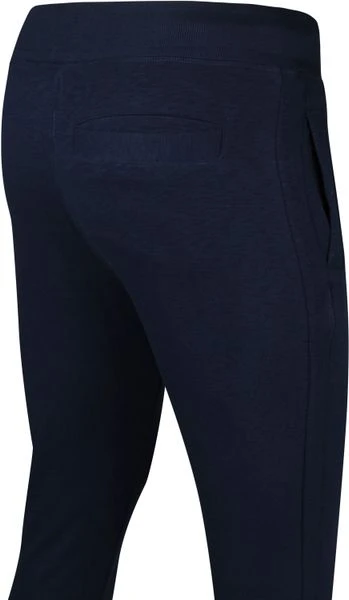 Met deze Louk joggingbroek van Suitable kies je voor een verfijnde broek met een sportieve twist. De sweatpants uit de Respect lijn heeft een tijdloze donkerblauwe ‘navy’ kleur en is voorzien van een subtiel melange. Daarnaast is de broek afgewerkt met een elastische band met lus sluiting aan de binnenzijde, twee steekzakken en een achterzak. Hiermee wordt je voorzien van voldoende opbergruimte.