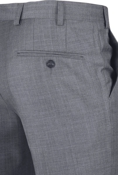 Met deze Evans Pantalon van Suitable haal je zowel een stijlvolle als een comfortabele herenbroek in huis. De moderne pantalon heeft een grijze kleur en een subtiel melange dessin. Daarnaast is de broek afgewerkt met een donkere knoop, een ritssluiting, twee steekzakken aan de voorzijde en twee klepzakken met knoopsluiting aan de achterzijde.Â
