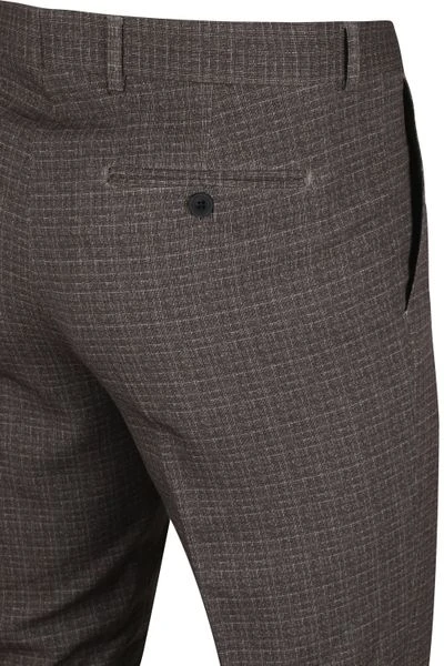 Voor zowel een casual als een formeel moment is deze jersey pantalon broek van Suitable uitermate geschikt. De pantalon heeft een tijdloze bruine kleur met ruitendessin. Deze zorgt ervoor dat de herenbroek eenvoudig te combineren is, met bijvoorbeeld een overhemd, pullover of blazer. Verder is de herenbroek voorzien van twee steekzakken, achterzakken en een ritssluiting.