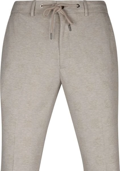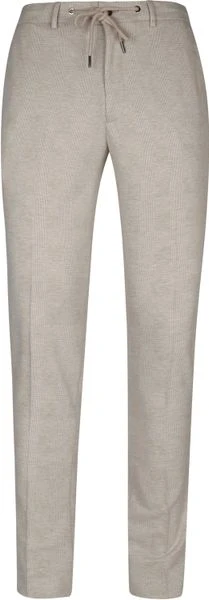 Voor zowel een casual als een formeel moment is deze jersey pantalon broek van Suitable uitermate geschikt. De pantalon heeft een tijdloze zandkleur met een ruitdessin. Deze zorgt ervoor dat de herenbroek eenvoudig te combineren is, met bijvoorbeeld een overhemd, pullover of blazer. Verder is de herenbroek voorzien van twee steekzakken, achterzakken en een ritssluiting.