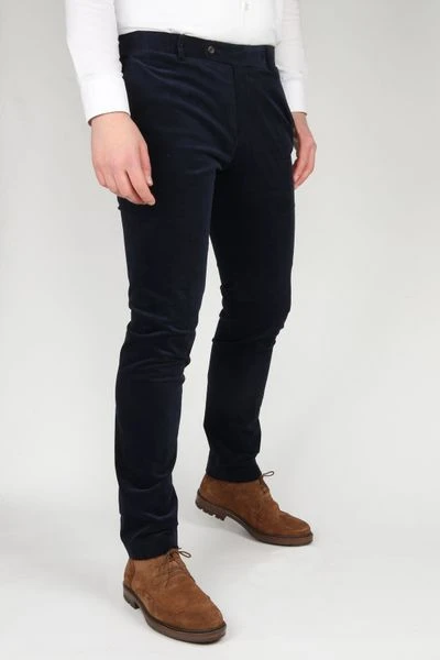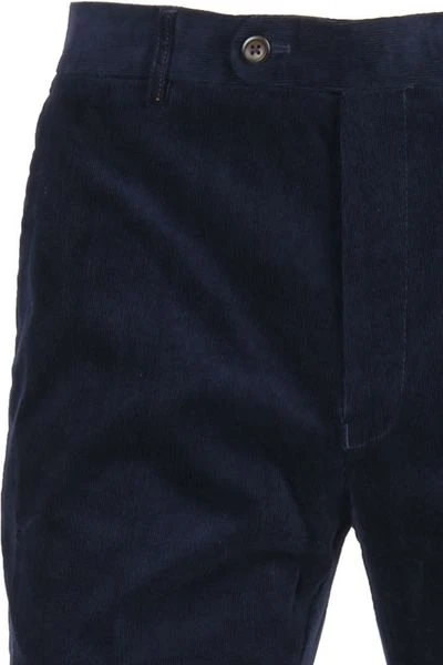 Met deze Xavi pantalon van Suitable haal je zowel een stijlvolle als een comfortabele herenbroek in huis. De modieuze pantalon heeft een tijdloze donkerblauwe ‘navy’ kleur en is heeft een geribbelde geweven corduroy binding. Daarnaast is de broek afgewerkt met een donkere knoop, een ritssluiting, twee steekzakken aan de voorzijde en twee paspelzakken met knoopsluiting aan de achterzijde. Erg leuk om te combineren met de bijpassende Xavi colbert.
