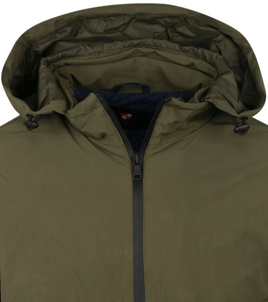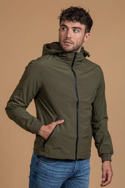 Met deze jas van Suitable ga je zowel trendy als comfortabel de deur uit. Het jack heeft een stijlvolle donkergroene kleur en is afgewerkt met een opvallende voering voor een stoere look. Daarnaast is de jas voorzien van een capuchon, twee steekzakken met ritssluiting en een binnenzak.Â