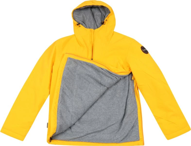 Kies voor een moderne, trendy uitstraling met deze stoere Rainforest jas van Napapijri. Dit model is afgewerkt met enkele stoere details zoals een groot merklogo, een capuchon, een buidelzak en een half zipper. De herenjas heeft een Anorak model, wat inhoudt dat je deze net als een trui over je hoofd heen aantrekt. Bij de kraag en aan de zijkant zit een ritssluiting, om dit voor jou te vergemakkelijken. Daarnaast is de jas op verschillende plekken te verstellen, om deze zo helemaal naar jouw lichaam aan te passen. Zo is de capuchon verstelbaar en kan je de jas ook rond het middel verstellen. Doordat het Northfarer model gemaakt is van 100% polyamide, biedt deze je water- en wind afstotende eigenschappen.